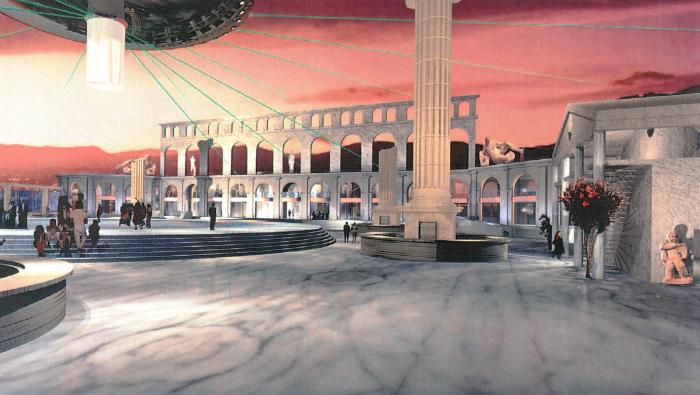 Entertainment project, Glamourworld, De Tempel, The Temple, met open lucht discotheek, Benidorm, Spanje, in opdracht van Entertainment Projects International, BV, Valkenswaard, dir. Hans Deuze, Valkenswaard, i.s.m. Willem Geene, Doorwerth,opdracht, 1997, ontwerp 1998 (97.11)