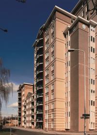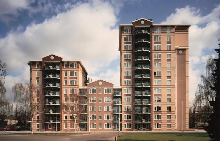 103 appartementen en 350 m2 commerciële ruimten, bijkantoor AMRO bank en een huisartsenpraktijk, Andromeda, Mercuriuslaan, Eindhoven, in opdracht van Hurks Bouw en Vastgoed, Eindhoven, opdracht 1992, uitgevoerd 1995-1996 (92.03)