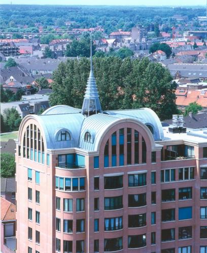 52 appartementen met zakelijke ruimten, Olympus, Veldmaarschalk Montgomerylaan 3-109, Eindhoven, in opdracht van Hurks Bouwbedrijf BV, Eindhoven, in samenwerking met IBC Vastgoed BV, Best, opdracht 1995,